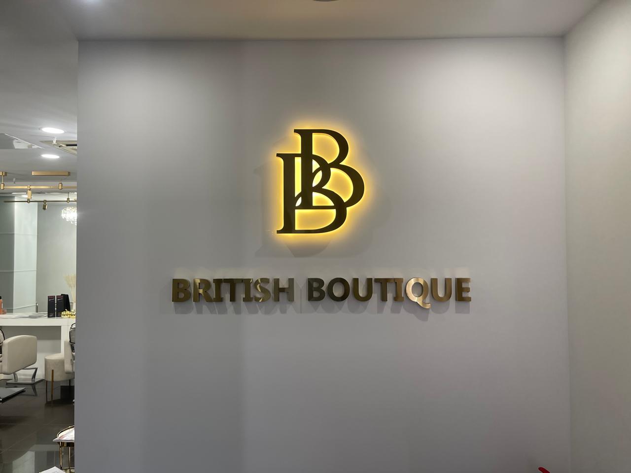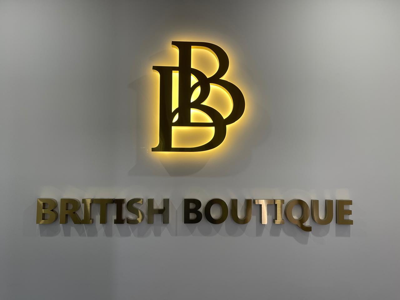 На встрече с клиентом уточнили размеры места установки (на стене), бюджет и требования к типу и дизайну объемных букв из металла. Дизайнеры предложили несколько вариантов, и клиент выбрал объемные буквы из бронзы высотой 15 см. При помощи 3D-макета определились с дизайном: шрифт букв без засечек, название бутика без подсветки, логотип из бронзы высотой 30 см, с задней подсветкой в декоративном стиле. Вывеска без оклейки и покраски.