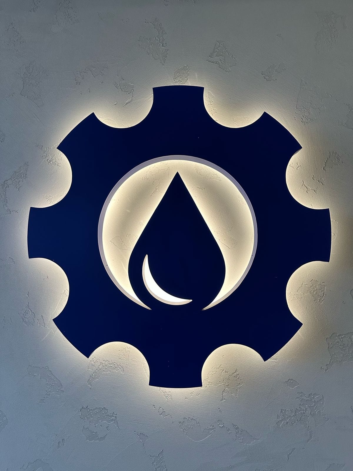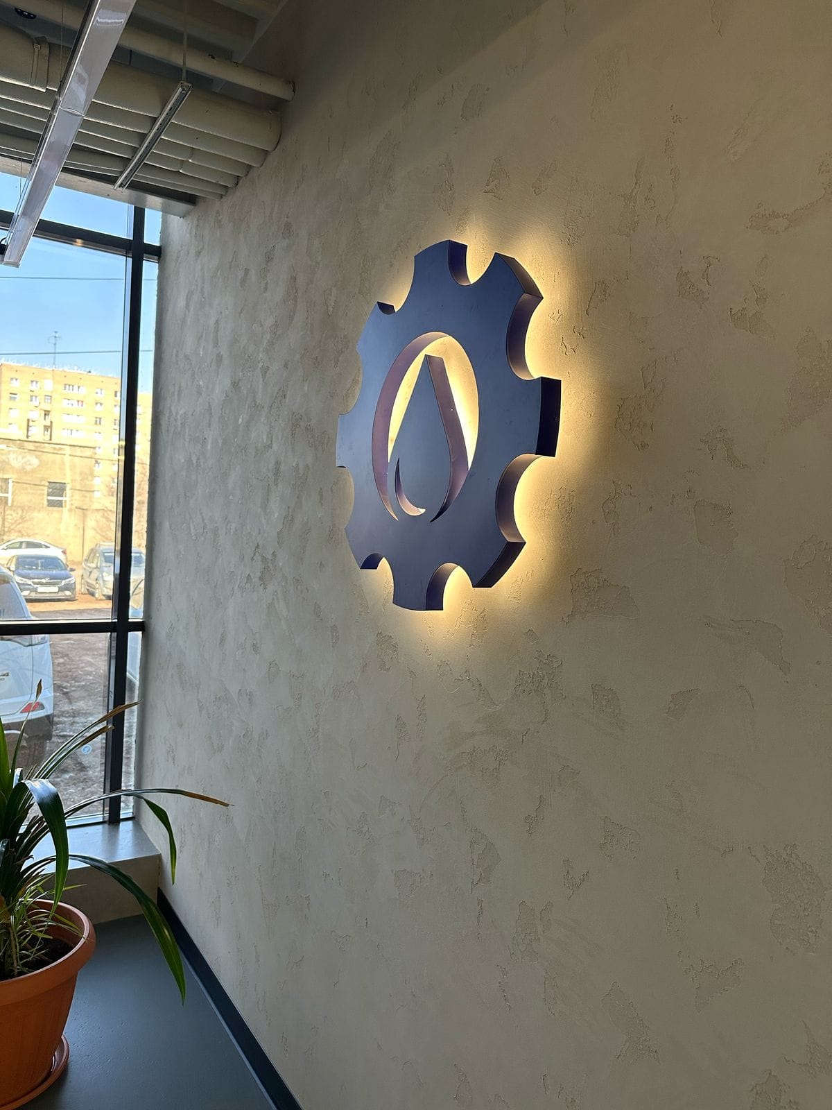 Фигурный световой короб изготовлен за 8 дней и установлен за 3 часа. Работает 8 месяцев исправно. Логотип без повреждений. Подсветка отличается экономичностью, потребляя 120 Вт/час. Плёнка не потускнела.