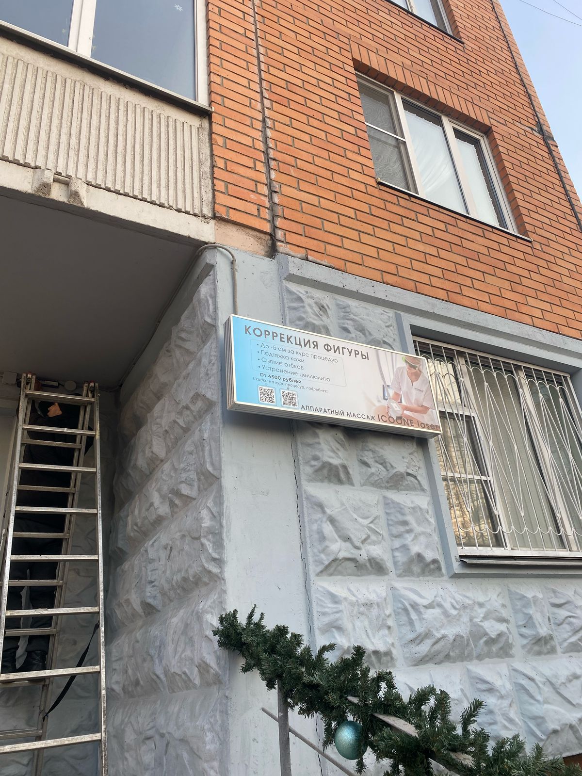 Заказчику нужно было отправить и установить вывеску по адресу: Неглинная ул., 20, Москва. Вывеска с влагозащитой IP67 установлена на стене. Для разметки отверстий использован лазерный уровень. В просверленные отверстия вставили химические анкеры. Кабели уложили в кабель-канал. Фигурный короб установлен с учётом требований к обслуживанию и очистке фигурного светового короба. Установка вывески произведена на специальную подложку. На монтаж ушло 3 часа.
