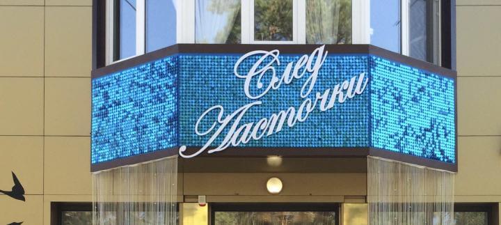 Готовая блестящая вывеска из пайеток устойчива к внешним явлениям. При этом уход за конструкцией прост – достаточно периодически удалять пыль мягкой щеткой или струей воздуха. Даем гарантию 5 лет на конструкцию и бесплатно обслуживаем при необходимости.