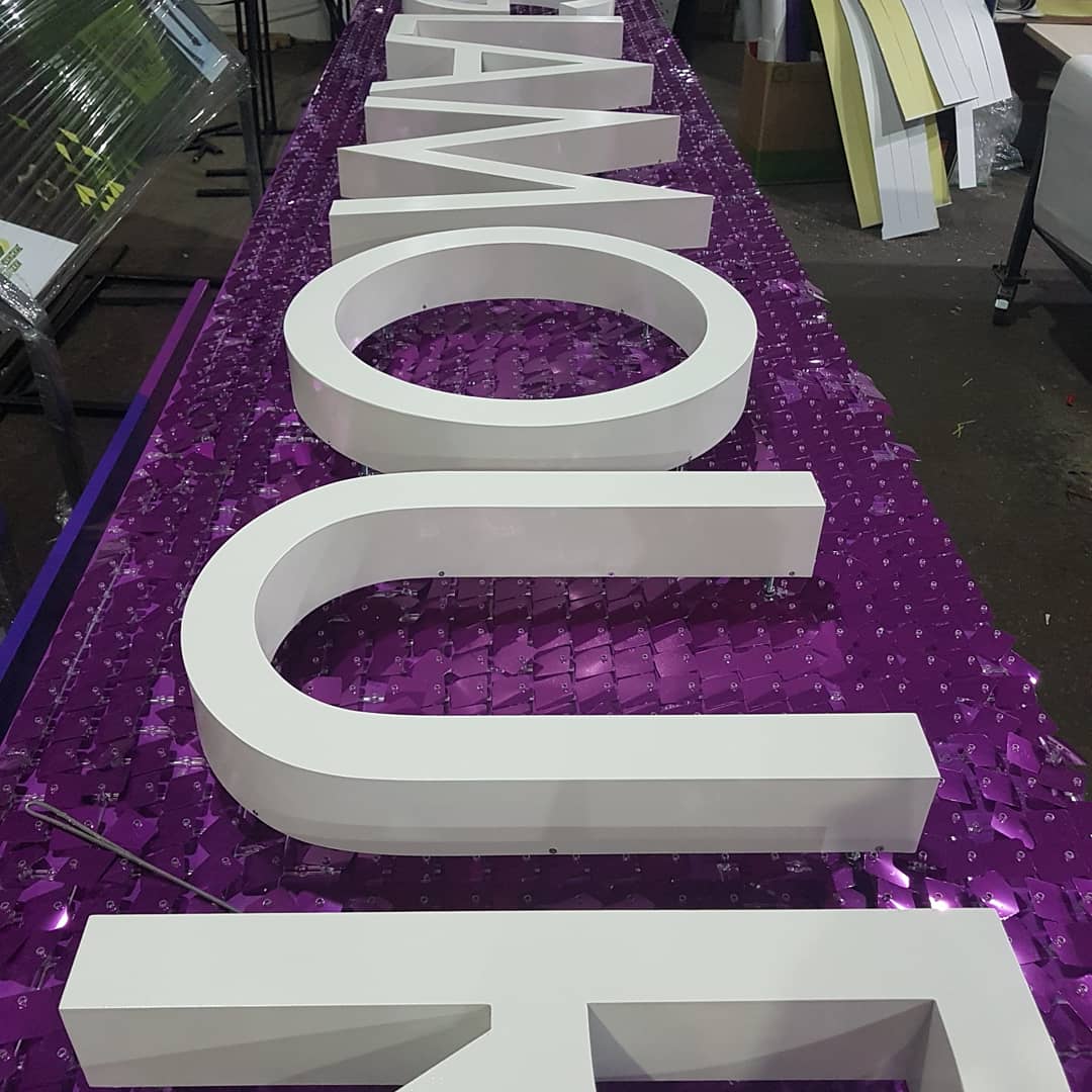 Круглые пайетки плавно переливаются, создавая волны цвета. Они подходят для всех основных видов вывесок – от названий магазинов до рекламных баннеров.